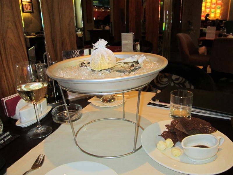 Второй раз в жизни сел в глубине, в зале для курящих. Конечно, первое, что бросается в глаза - это реклама наступившего сезона устриц и сыра моцарелла. При виде цены за штуку (а устрицы именно в штуках!) едва не смалодушничал. Но потом взял себя в руки и при героической поддержке очаровательной официантки Ирины начал вникать по все тонкости, что это за продукт, чем различаются между собой два представленных вида, сколько будет в граммах и т.п. Изумили познания молодой девушки в таком деликатном предмете! Более увлекательно, мне кажется, не рассказать. Заказал сразу две - на три духу просто не хватило.