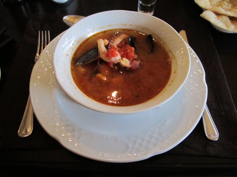 Далее попробовал себя итальянским супчиком Чиопино с разнообразнейшими морепродуктами или, как любят говорить иные гурманы, с морскими гадами. Гады там или не гады, а ощущение такое, словно наваристого борщика в хорошем месте от души откушал. Понравилось, чего и всем читателям желаю. Забредёте в ПОРТОФИНО, так сразу и спрашивайте Чиопино - вам его с пылу-жару в лучшем виде представят.