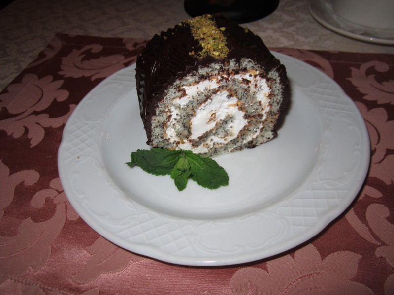 Конечно, наш сладкоежка не смог отказать себе в таком излишестве, как десерт - великолепный свежайший восхитительный маковый рулет. Если вам не приходилось бывать в ШоКо, то вам, мои читатели, просто неведомо, каким он может быть, этот маковый рулет. Очень-очень рекомендую попробовать, и тогда вы каждый раз будете возвращаться в ШоКо и только в ШоКо.