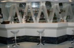 Интерьер выдержан в стиле Севера: северное сияние, столики-льдинки, столы-лодки.