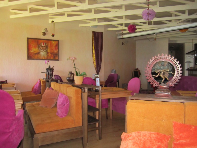 Один из лучших способов снять стресс — получить позитивую информацию для всех наших органов чувств. Мы создали пространство, в котором вещи радуют взгляд, ароматы завораживают, а музыка расслабляет и успокаивает. Что касается вкусов, то вас ожидает целая гамма впечатлений: блюда индийской кухни, обширное вегетарианское меню, целебные смеси соков, имбирные и травяные чаи... Тёплый свет, уютный интерьер, вид на пруд — всё это как нельзя лучше настраивает на восприятие наших блюд.