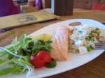 На горячее автор опять-таки легко изменил себе. Не жалуем мы в обычной жизни рис. Нам он кажется чересчур тяжелой и калорийной пищей. Однако в составе блюда, которое называется "стейк из лосося и пулао с овощами", рис излишним вовсе не показался. Всё было съедено до последней крупинки риса. Наверно, ещё и добавки попросил, да предстояло дегустировать мороженое, а затем долго-долго упивался изумительным вкусом фирменного имбирно-лимонного чая, после которого уже вовсе впору было начать медитировать, да не умеем мы, не научены...