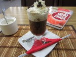 К моему удивлению, в 16.30 - последний праздничный день - наш Сушкоф был близок к наполнению. Всего 3-4 свободных столика. Люди по-семейному, с детьми догуливали последние счастливые часы, ведь завтра уже на работу. Сел хорошо, сразу ко мне подошла официант Ирина Паклюсева, получил в руки столь мною любимое меню и заказал чашечку кофе, - помните, как это говорил Андрей Миронов в Бриллиантовой руке.