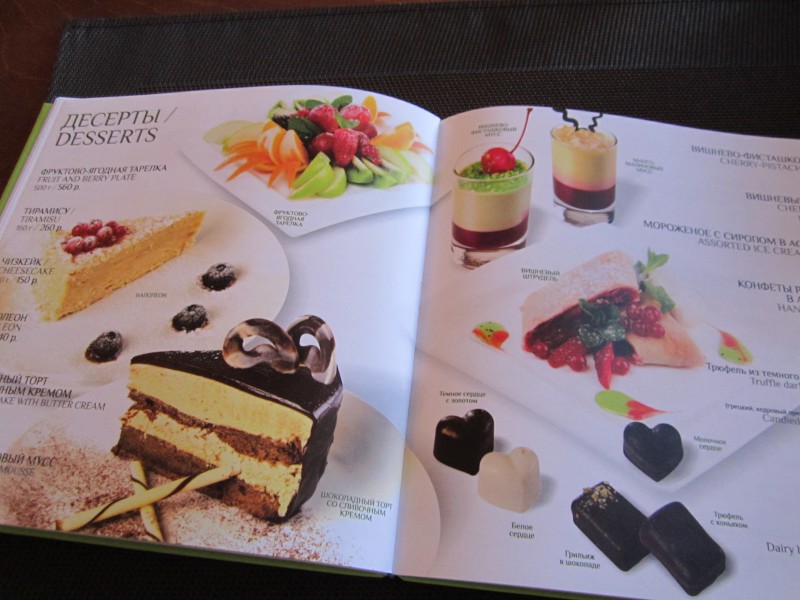 В общем, спустя какие-то мгновения я уже сидел на мягком диванчике у окна, ощущал за спиной настоящую упругую, а не какую-нибудь имитацию, подушку, и листал восхитительно красочное интереснейшее меню. Надо ли говорить, что как по мановению палочки на столике появились и волшебный приготовленный руками Маши карамельный капучино и метакса, и вкуснейшая конфетка! Однако впереди меня ждало увлекательнейшее путешествие по страницам цветного меню, умелым и компетентным проводником по которому выступила мой замечательный официант Софья.